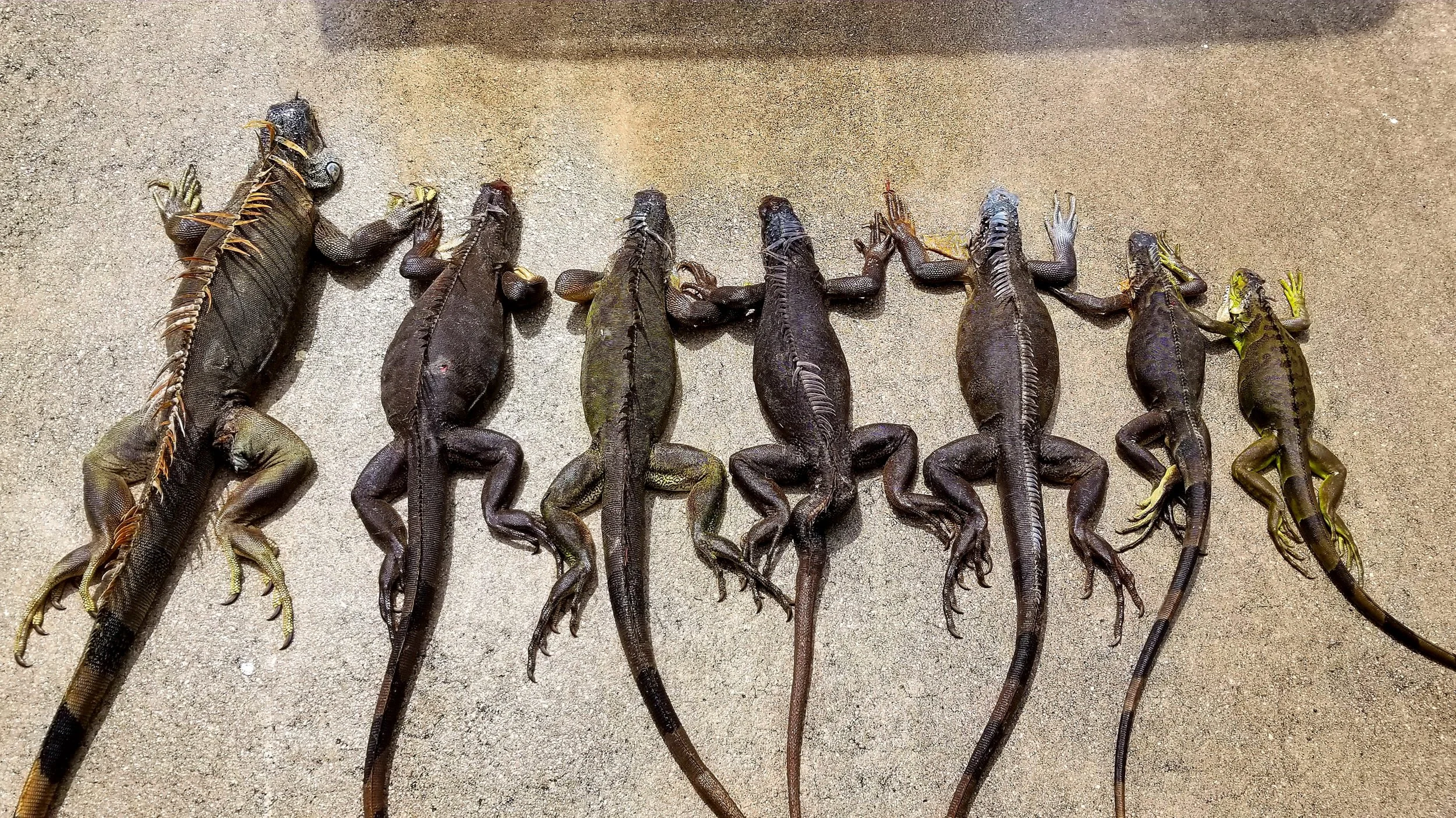 Unfortunately, green iguanas relish eating all of the beautiful tropical landscaping we tend to plant here in Florida. They consume both leaf and flower, leaving yards devastated and costing homeowners thousands of dollars in damages. They destroy edible annual gardens and leave salmonella contaminated feces around pools and decking. We are on the front lines battling infestation, ensuring that our customers can continue to peacefully enjoy their homes and yards.
